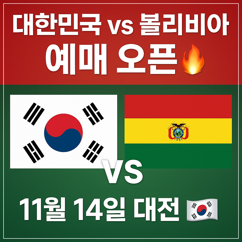 드디어 대한민국 축구 대표팀이 돌아옵니다. 11월 14일 금요일 저녁, 대전월드컵경기장에서 남미의 강호 볼리비아와 평가전을 치르는데요. 이번 경기는 그냥 친선경기가 아닙니다. 2026 월드컵을 앞두고 홍명보 감독이 전력을 최종 점검하는 마지막 기회거든요. 저도 벌써부터 설레네요! 지난 국가대표 경기들이 매번 매진 행렬을 이어갔던 만큼, 이번에도 티켓 구하기 전쟁이 예상됩니다. 그래서 이번 글에서는 대한민국과 볼리비아의 경기 예매 일정부터 할인 혜택, 관전 포인트까지 꼼꼼하게 정리해봤으니, 놓치지 마세요!