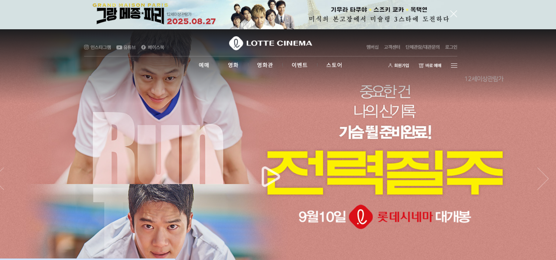 - 롯데시네마 모바일 앱을 설치하고 실행합니다