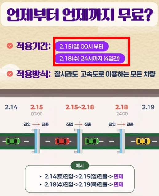 | 면제 기간 | 2.15(일) 00시 ~ 2.18(수) 24시 |