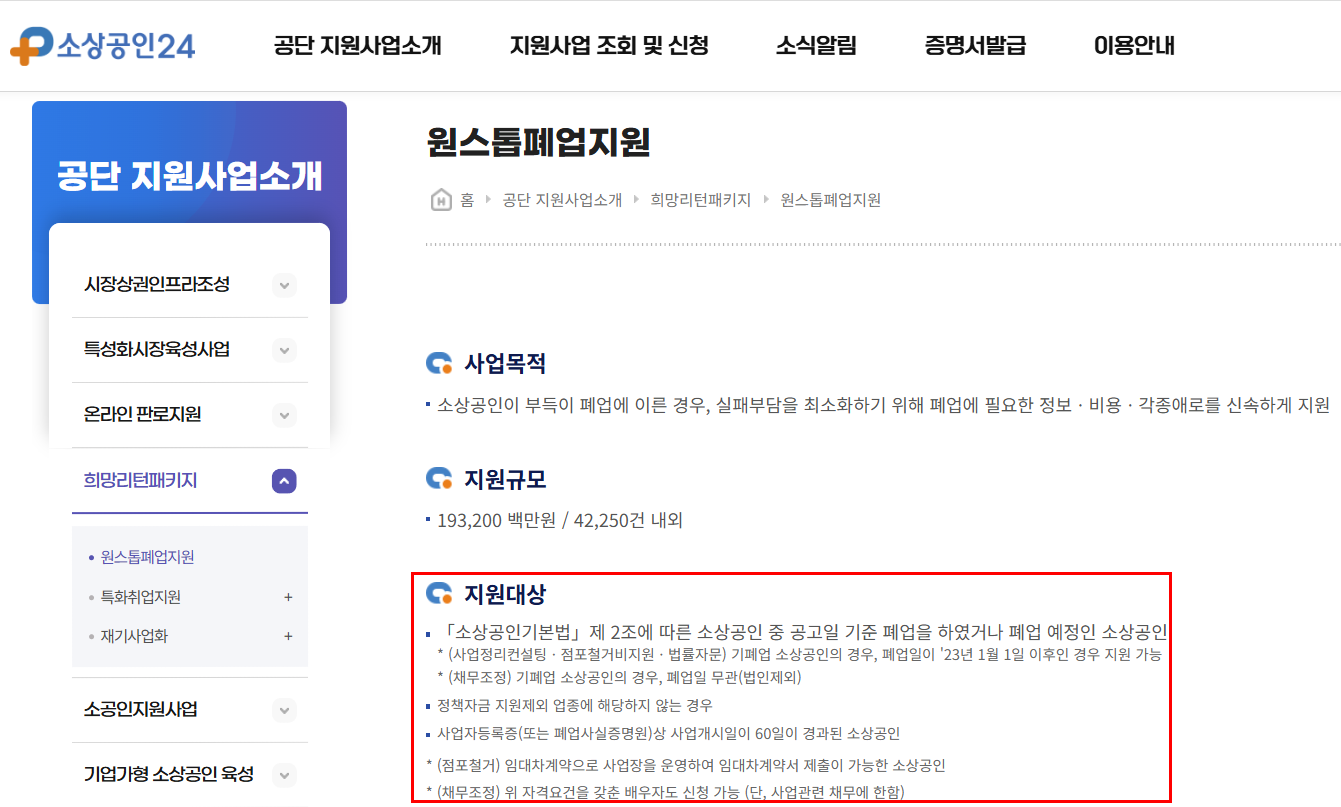 폐업이 확정되었거나 예정되어 있다면 폐업 전에 신청 가능 여부를 먼저 확인하는 것이 유리합니다.