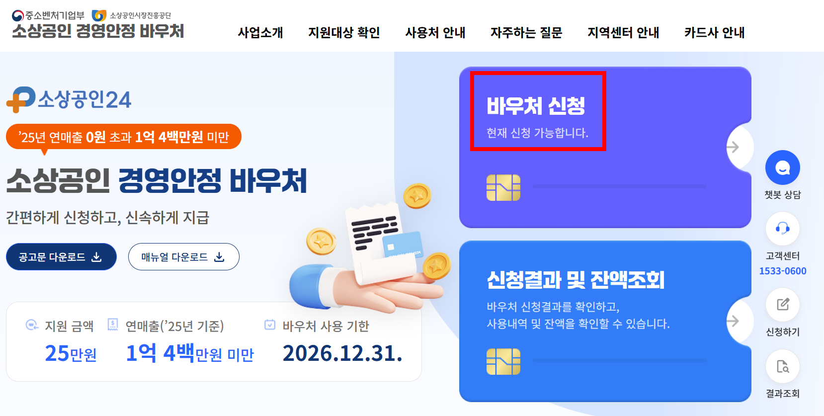 ③ 2026년 신규 개업자: 2025년 12월 31일 이전 개업자만 대상입니다. 올해 새로 개업했다면 해당 바우처 대상이 아닙니다.