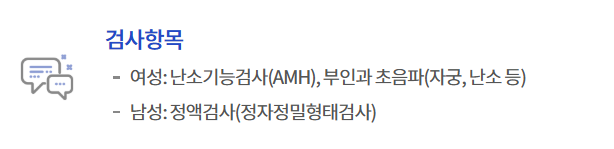 검사비는 여성의 경우 최대 13만원, 남성의 경우 최대 5만원까지 지원받을 수 있습니다. 여성은 난소나이와 난자 개수 등을 확인할 수 있는 난소기능검사, 자궁과 난소의 건강상태를 확인할 수 있는 부인과 초음파, 남성은 정액검사의 검사비를 지원받을 수 있습니다. 저희 남편의 경우에는 첫째 임신 전에 받은 적이 있는데, 별로 좋은 경험은 아니었는지 이번엔 괜찮다고 하더라구요. 그래서 저는 난소기능검사와 질 초음파를 함께 받기로 했습니다.