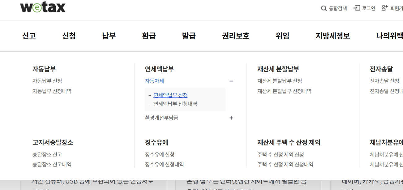 - PC: 이택스(etax.seoul.go.kr) 접속 → 신고납부 → 자동차세 연납