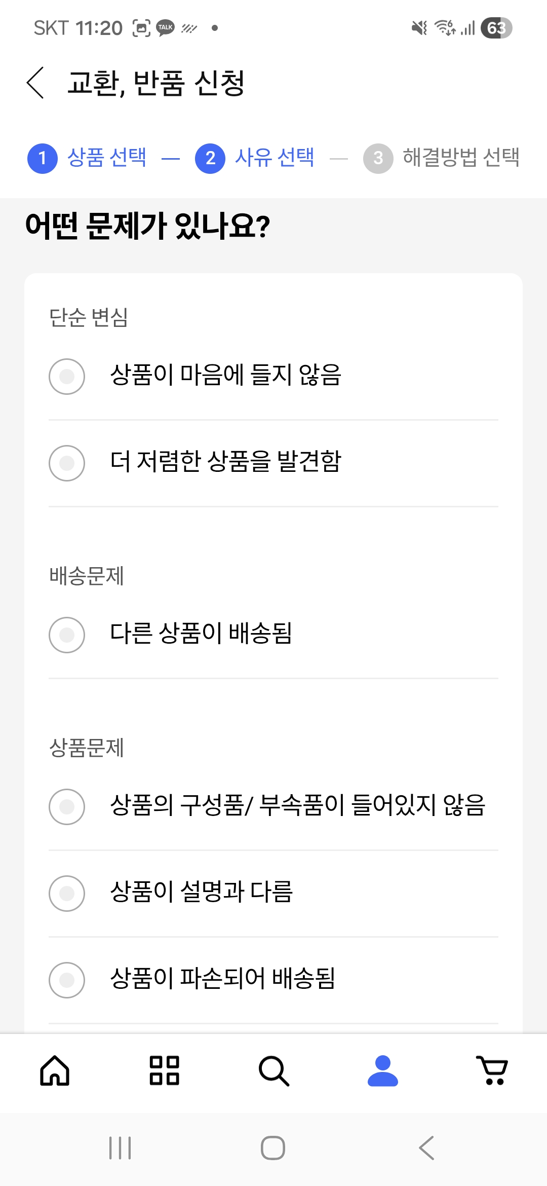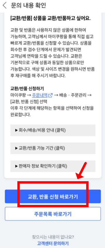 반품이나 교환은 굳이 전화할 필요가 없습니다. 앱에서 바로 신청할 수 있어요.