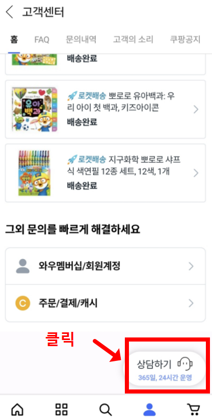 3. 전화보다 빠른 방법: 쿠팡 앱 채팅 상담