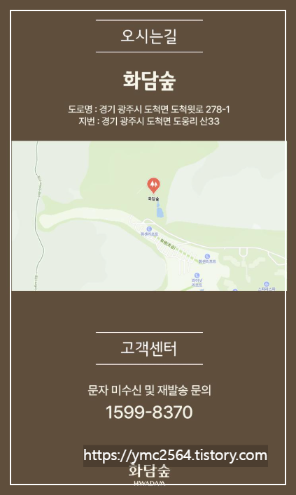 - 자가용: 서울에서 약 40분 (경기도 광주시 도척면 도척윗로 278-1)