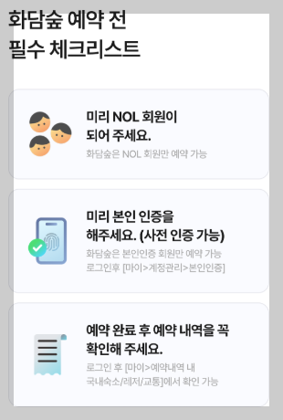 화담숲 공식 홈페이지(hwadamsup.com) 접속 → NOL(야놀자) 계정으로 연동. 예매 오픈 전에 반드시 회원가입과 본인인증, 결제수단 등록까지 완료해두세요.
