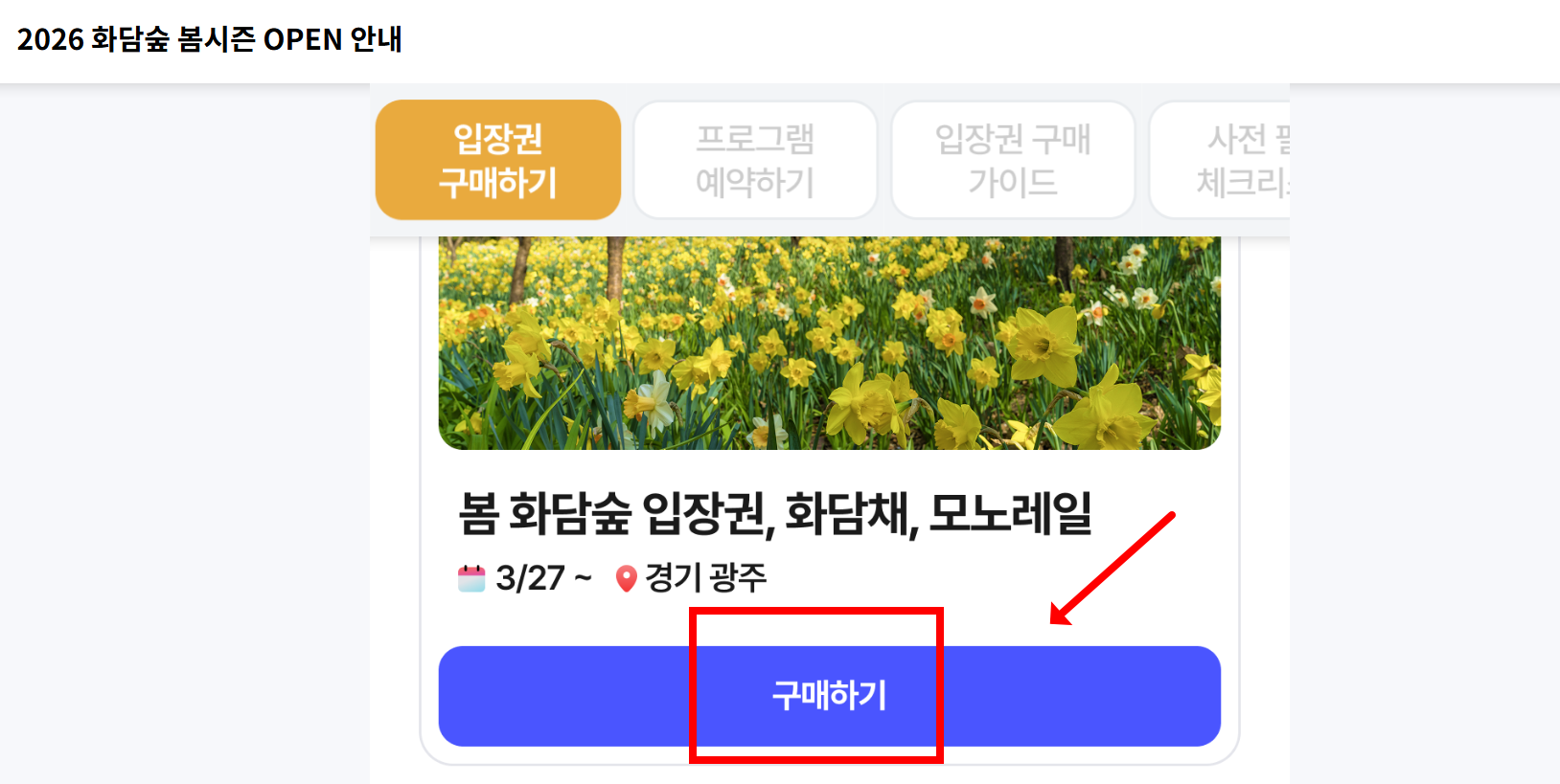 | 예매 오픈 | 입장권·화담채: 3월 10일 오후 1시 / 모노레일: 3월 11일 오후 1시 |