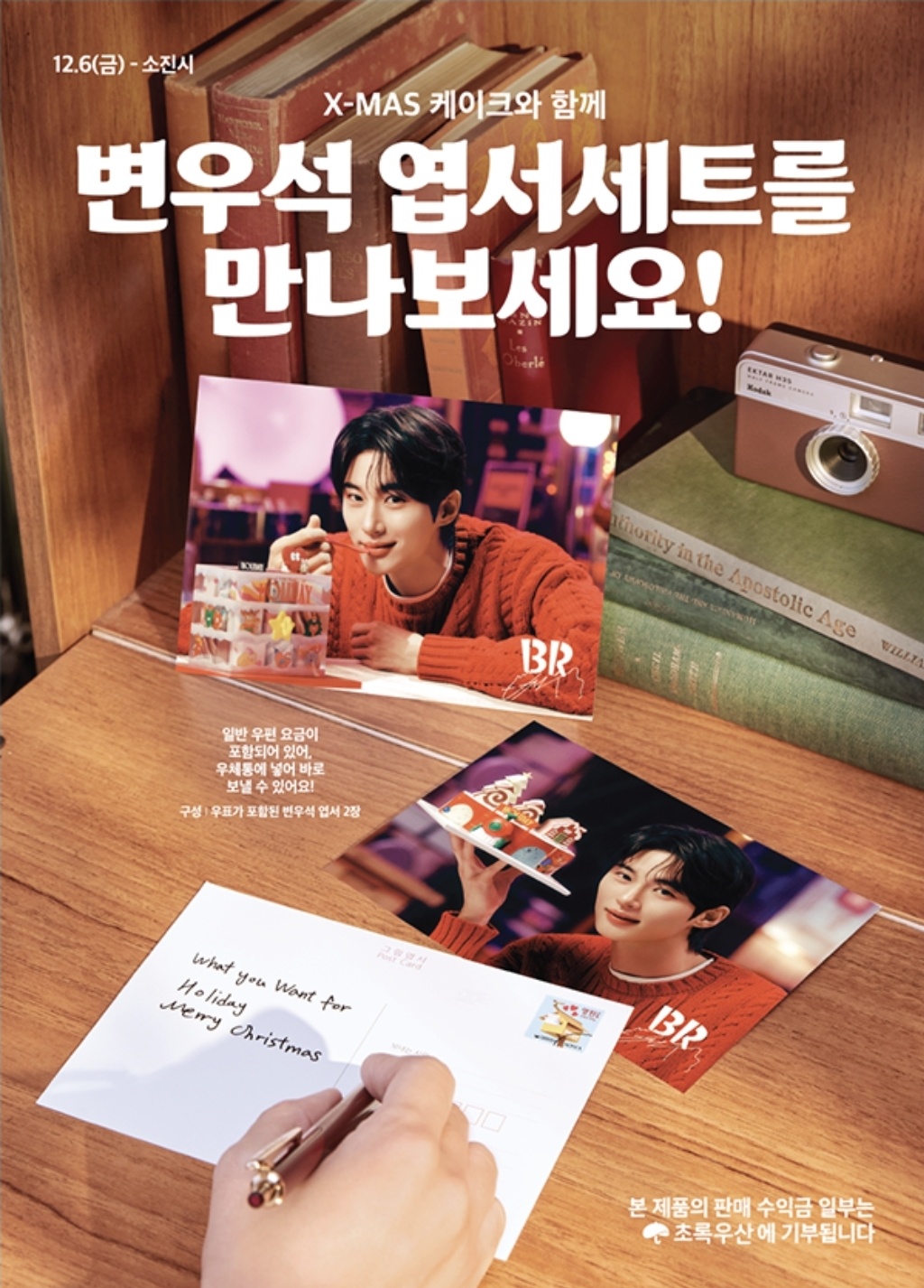 그리고 할인 혜택뿐 아니라 크리스마스 케이크 주문 시 한정판 변우석 엽서를 구매하실 수 있습니다.