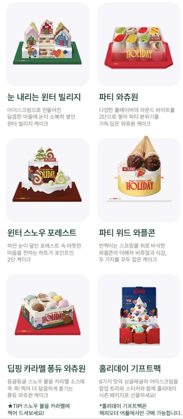 이번 배스킨라빈스 크리스마스 케이크 라인업은 아래와 같습니다.