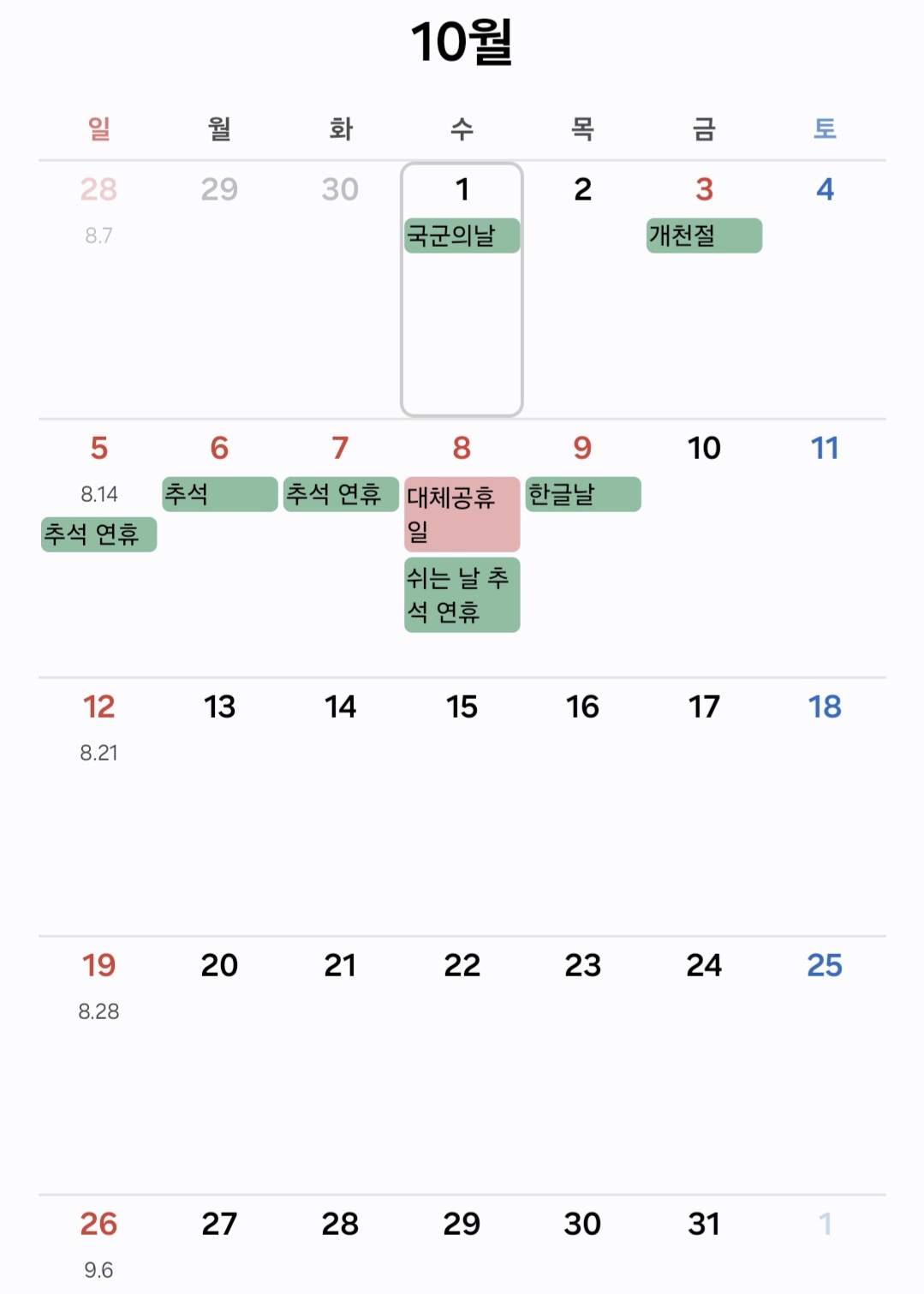 ☞ 9월~10월: 개천절, 추석 연휴, 한글날