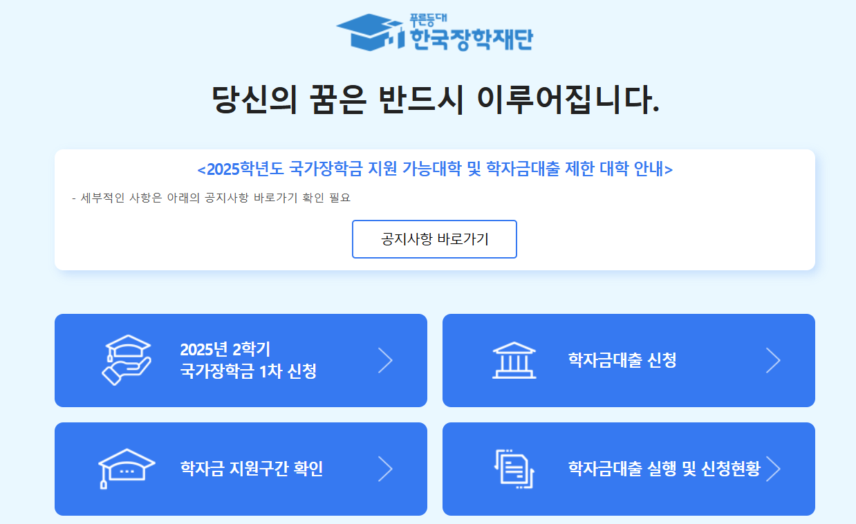 장학금은 단순한 금전적 지원을 넘어, 학업에 전념할 수 있는 여건을 마련해주는 든든한 기반입니다. 경제적인 이유로 공부를 중단하거나 진로를 포기하는 일이 없도록, 국가가 제도적으로 돕는 만큼 이 기회를 충분히 활용하시길 바랍니다. 단 한 번의 신청이 여러분의 한 학기, 아니 대학생활 전체에 큰 영향을 미칠 수 있습니다.
