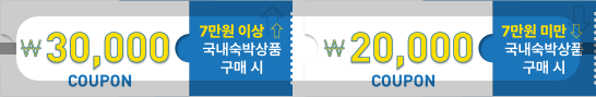 - 7만 원 이상 숙박상품 → 3만 원 할인
