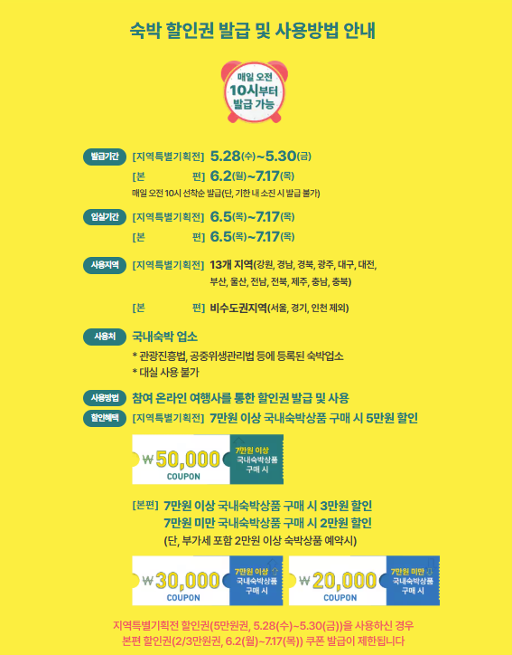 - 숙박권 수량 제한: 준비된 수량(40만 장)이 소진되면 발급 종료