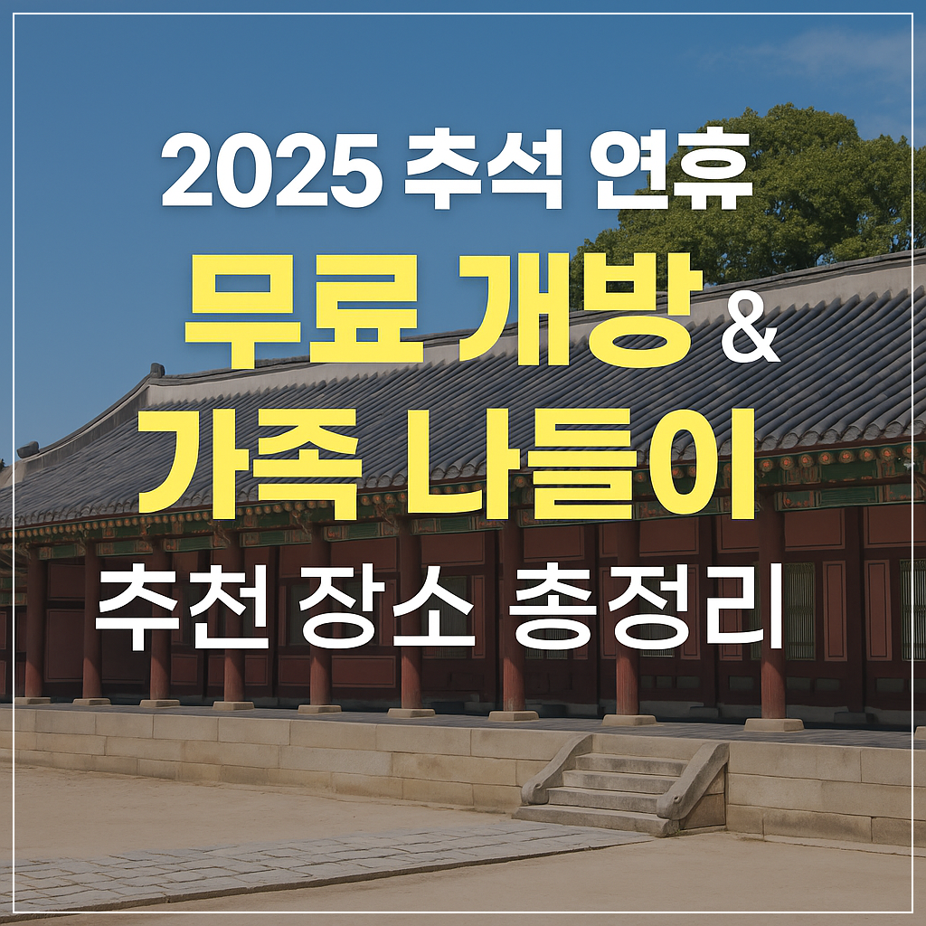 다가오는 2025년 추석 연휴, 가족과 함께 어디를 가야 할지 고민되시나요? 추석은 1년에 단 한 번, 온 가족이 모이는 특별한 명절입니다. 하지만 연휴 동안 대부분의 사설 시설은 문을 닫거나 혼잡해서 나들이 장소를 고르기 쉽지 않습니다. 다행히도 정부와 지자체에서는 매년 추석 연휴를 맞아 대표 문화재·국립시설 무료 개방 및 다양한 할인 이벤트를 진행하고 있습니다. 이번 글에서는 추석 연휴 무료 개방되는 주요 장소와 가족 나들이 추천 코스를 한눈에 정리해드리겠습니다.