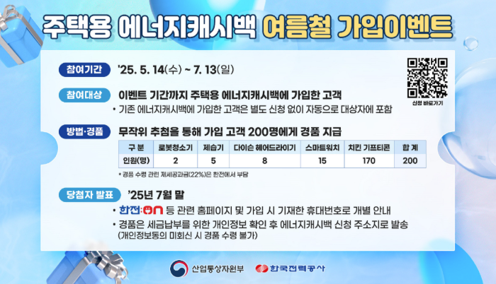 2025년에는 에너지캐시백 참여자들을 위한 특별 여름 이벤트도 함께 진행됩니다. 전기를 아끼기만 해도 경품까지 받을 수 있는 기회, 지금이 바로 참여할 때입니다.