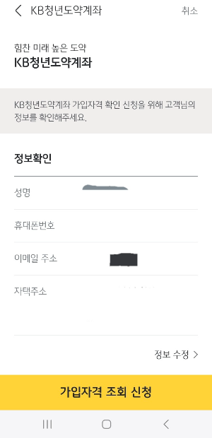 시스템이 자동으로 신청자의 소득 요건과 가구 요건을 판별하여 가입 가능 여부를 안내합니다. - 계좌 개설 및 상품 선택
