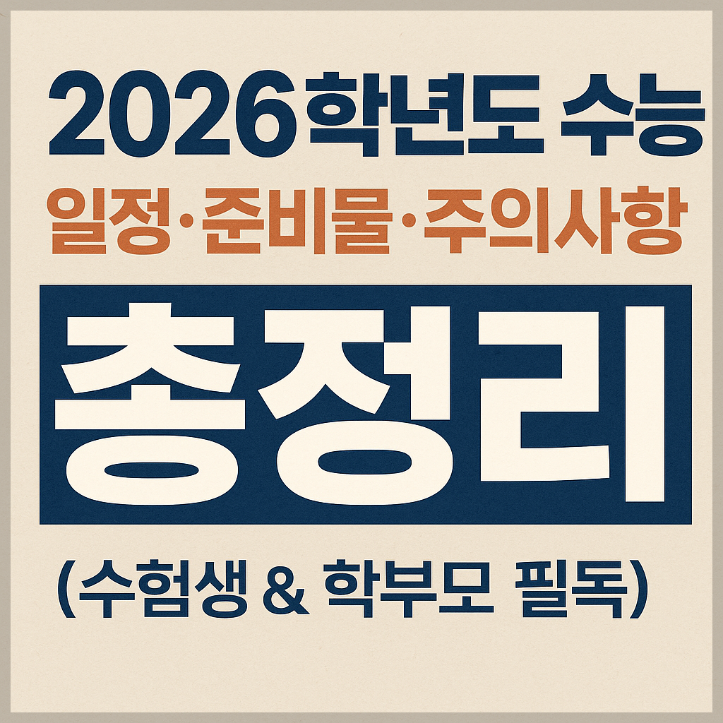 올해도 어느새 수능의 계절이 다가왔습니다. 한 해 동안 쌓아온 노력의 결실을 맺는 2026학년도 대학수학능력시험, 이제는 막판 컨디션 관리와 실전 대비가 가장 중요할 때입니다. 수험생에게는 인생 첫 관문이자 그동안의 땀을 증명하는 무대이고, 학부모에게는 그동안 함께 달려온 긴 여정의 마지막 챕터이기도 합니다. 그래서 지금 시기에는 ‘공부’보다 더 중요한 것이 있습니다. 바로 시험 당일의 실수 없는 준비와 안정된 컨디션 유지입니다. 많은 학생들이 “공부는 다 했는데 준비물을 깜빡해서”, “아침 컨디션이 좋지 않아서” 실력을 다 보여주지 못하곤 합니다. 작은 실수가 큰 결과를 바꾸지 않도록, 이번 글에서는 수능 당일의 모든 변수를 대비할 수 있도록 시험 일정, 시간표, 준비물, 도시락 가이드, 컨디션 관리법, 학부모 행동 요령까지 한눈에 정리했습니다. 수험생은 물론 자녀를 응원하는 부모님도 꼭 함께 읽어보세요. 이 글 한 편이면 수능 전날부터 당일까지 완벽하게 준비하실 수 있습니다.