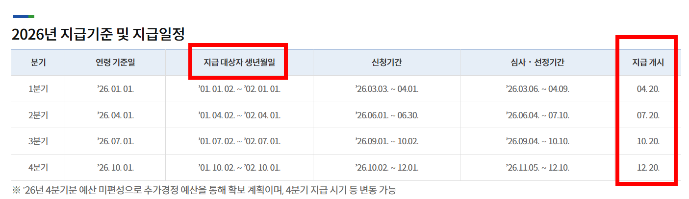 특히 2026년 1분기 신청 마감은 4월 1일이기 때문에 대상이라면 신청 기간을 꼭 확인하시기 바랍니다.