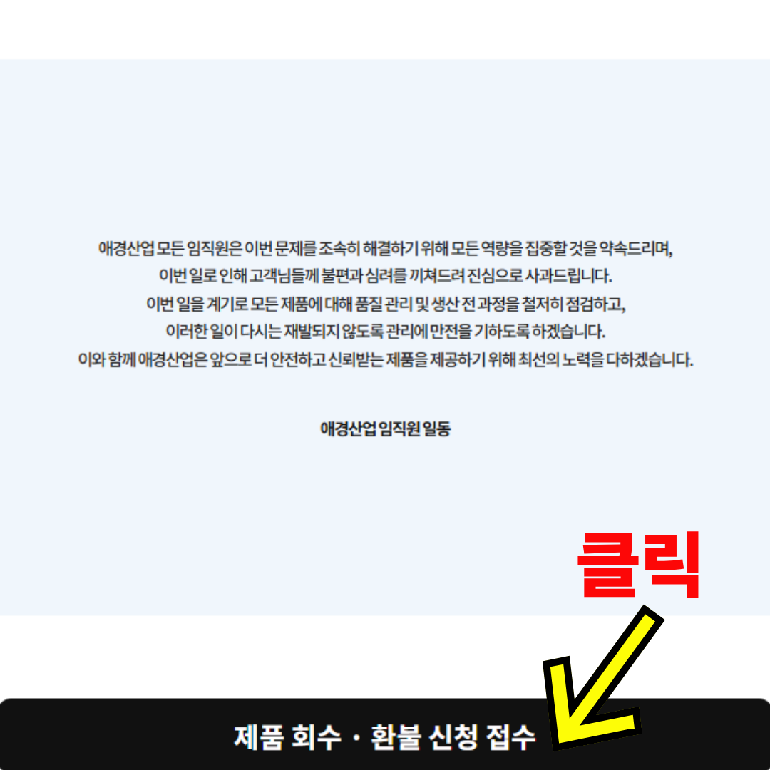 - 애경산업 공식 홈페이지 회수·환불 접수 페이지 이용