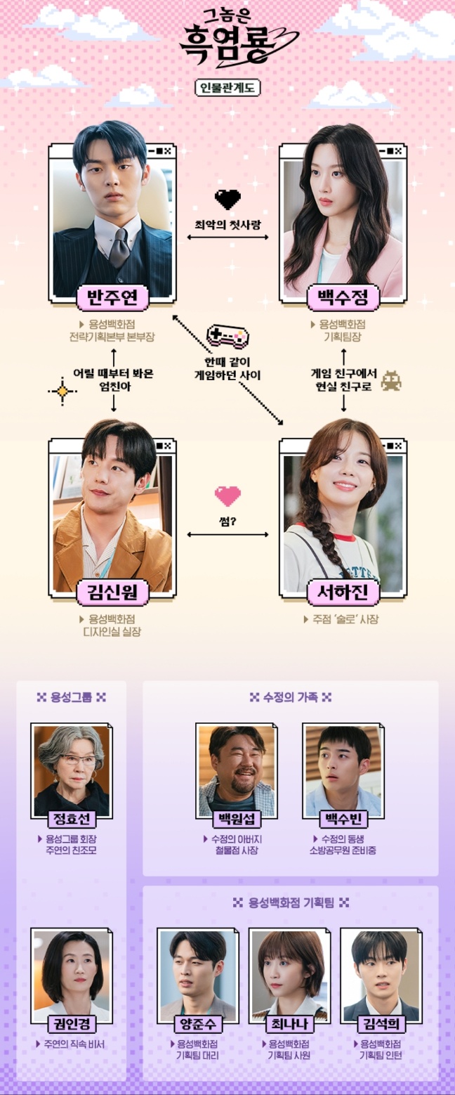 <그놈은 흑염룡>은 첫사랑, 흑역사, 직장 생활 등 다양한 인간적인 요소를 짜임새 있게 다룬 드라마에요. 원작 팬뿐만 아니라 신선한 스토리와 공감 요소를 찾는 시청자들에게도 꼭 추천하고 싶어요. 흥미진진한 전개와 유쾌한 캐릭터들 덕분에 매주 기다려지는 드라마입니다. 여러분에게도 소중한 추억이 되는 드라마가 되길 바랍니다.